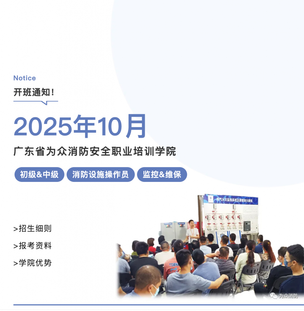 广东为众消防培训学院2025年10月「消防设施操作员」培训开班通知!