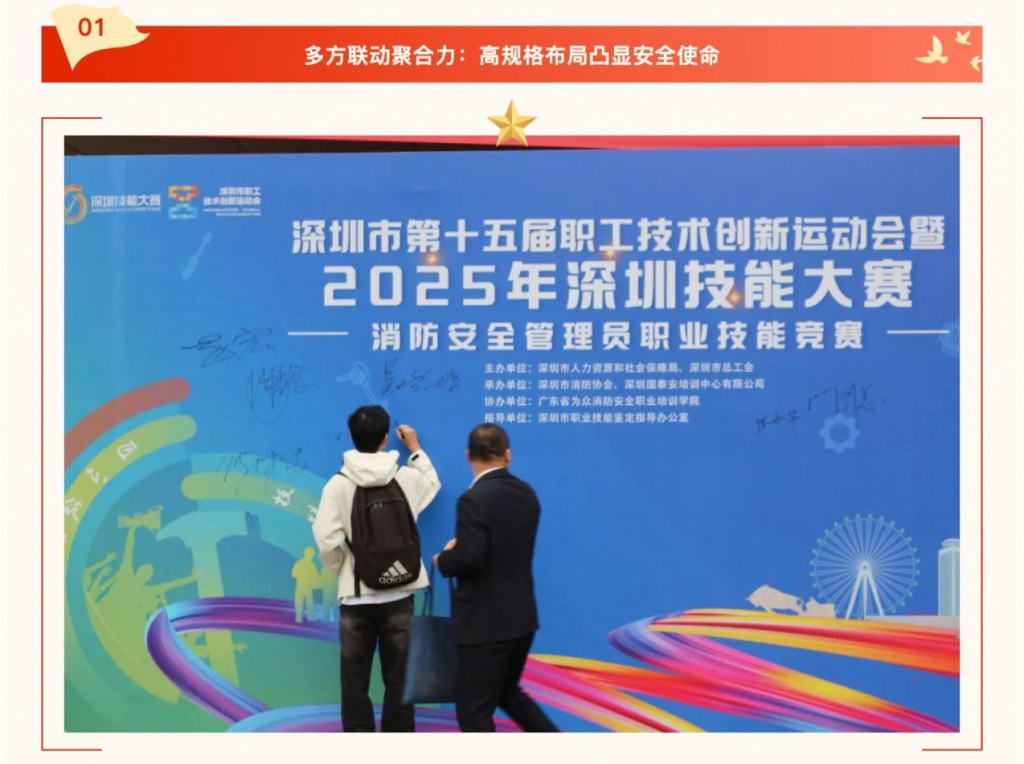 2025年10月21日-22日,由深圳市人力资源和社会保障局、深圳市总工会联合主办,深圳市消防协会、深圳国泰安培训中心有限公司承办,广东省为众消防安全职业培训学院协办,并得到深圳市职业技能鉴定指导办公室专业指导的深圳市第十五届职工技术创新运动会暨 2025 年深圳技能大赛 – 消防安全管理员职业技能竞赛圆满落幕。作为深耕消防职业教育领域的专业机构,我院全程深度参与赛事筹备与执行,见证了这场兼具专业性与影响力的行业盛会。
