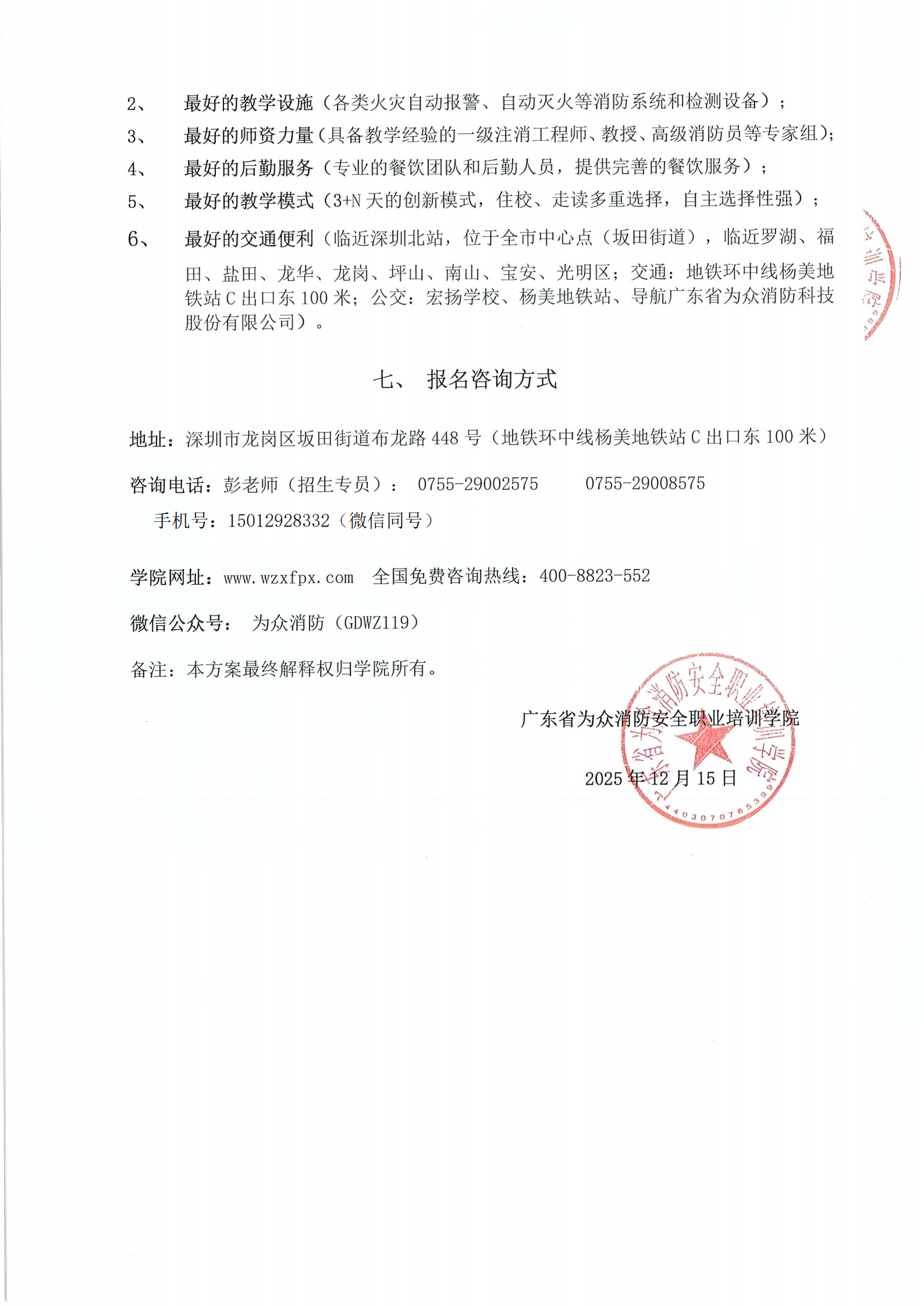 2026年广东为众消防培训学院消防设施操作员招生简章