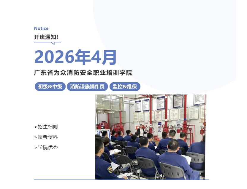 广东为众消防培训学院2026年4月「消防设施操作员」培训开班通知!